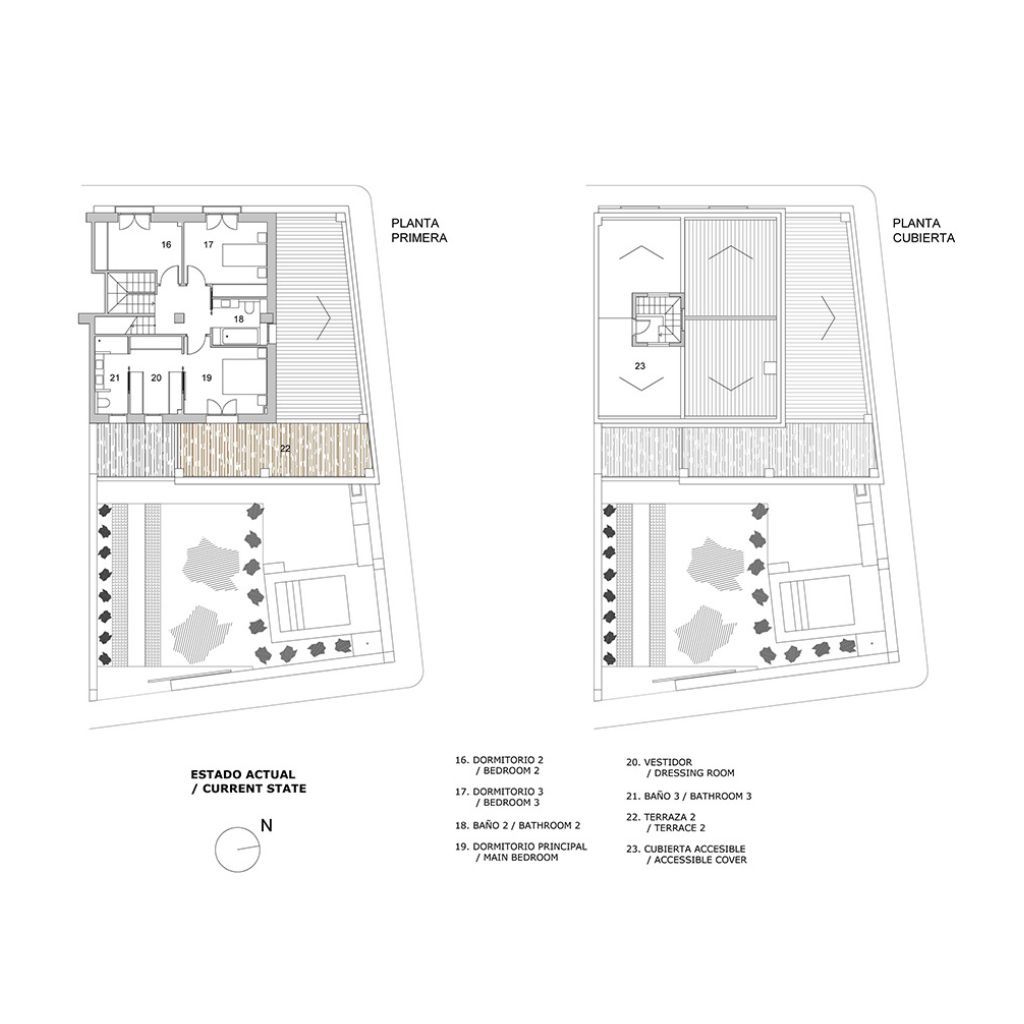 Tipología: Vivienda unifamiliar con tres fachada a vía pública, jardín posterior y medianera. (Proyecto de Rehabilitación Integral).